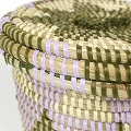 セネガル蓋付き筒カゴ ジグザグ柄 小 アイボリーモスラベンダー