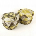 セネガル蓋付き筒カゴ ジグザグ柄 大 白黒黄