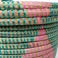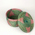 セネガル 筒型ふた付きかご 緑xピンク 小