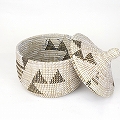 セネガルカゴ 三角 三角ストライプ柄 大 白黒