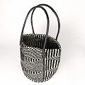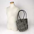 アクリルxサイザルバッグ 中 丸革ハンドル黒ロング 黒
