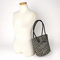 アクリルxサイザルバッグ 中 丸革ハンドル黒ロング 内布付 黒