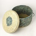 トゥルカナバスケット 蓋付フルーツかご 緑