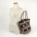 オール羊毛サイザルバッグ10インチ共手 ミックスハンドル 波とダイヤ 焦げ茶x生成xダークグレー