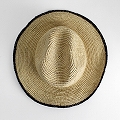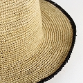 ラフィアかぎ編み帽子 中折れ 縁ライン 縁7 NAT黒