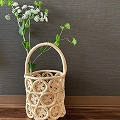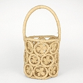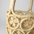 ラフィアマクラメ透かしかご 丸底1本手 四つ葉 NAT