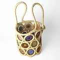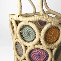 ラフィアマクラメ透かしかご 丸底2本手 丸マルチ
