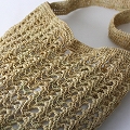 ラフィアかぎ編みバッグ 透かし縦 肩下げ NAT
