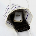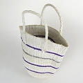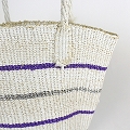 プラスチックサイザルバッグ丸底 細ボーダー 白x紫xプラチナ