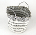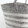 プラスチックサイザルバッグ12x12 ハンドル短 ボーダー シルバーx白