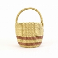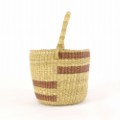 ニアリガバスケット 丸底 段々ストライプ ワンハンドル 小 とうもろこしサーモンナチュラル