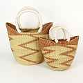 ニアリガバスケット ニケフォルム 雷柄 小 とうもろこしサーモンピンク ナチュラルハンドル