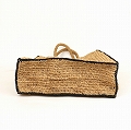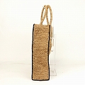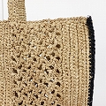 ラフィアかぎ編みバッグ 透かしストライプ四角 紅茶黒