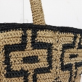 ラフィアかぎ編みバッグ パッチワークでこぼこ柄 コーヒー黒