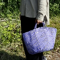 アクリルxサイザルバッグ共手12x10 ハンドル短 フラッグ 青