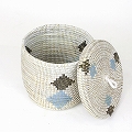 セネガル筒カゴ ダブルダイヤ柄 中 白黒ペールブルー