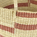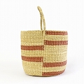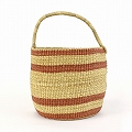 ニアリガバスケット 丸底 段々ストライプ ワンハンドル 大 とうもろこしサーモンピンクナチュラル