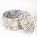 セネガルカゴ 三角ストライプ柄 大 白ペールブルー