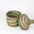 セネガルカゴ 階段柄 台付 大 オリーブ白