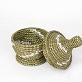 セネガルカゴ 階段柄 台付 小 オリーブ白