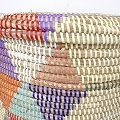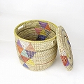 セネガル筒カゴ 蓋付き マルチ三角柄 中 クリームマルチ