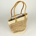 バナナ生成サイザルバッグ 大 丸革ハンドル茶