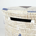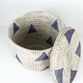 セネガル筒カゴ 蓋付き 中 青白