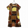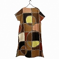 泥染フレンチスリーブワンピース 40茶円格子