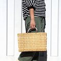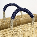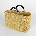 ストロー四角かご革クロスステッチハンドル M 濃紺