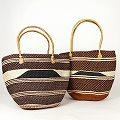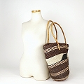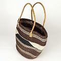 伝統柄細編みサイザルバッグ 楕円底 革ハンドル茶 茶柄アソート