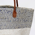 プラスチックサイザルバッグ10x12 丸革ハンドル 白1本太ボーダー