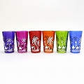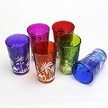モロッコプリントグラス 1個売り シルバーヤシ柄 赤
