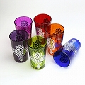 モロッコプリントグラス 1個売り シルバーファティマ真ん中ライン 青