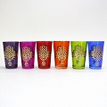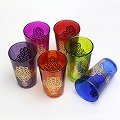 モロッコプリントグラス 1個売り ゴールドファティマ真ん中ライン ピンク