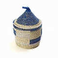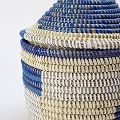 セネガルカゴ とんがり蓋付き 格子柄 小 白ベージュ紺