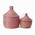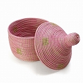 セネガル 蓋付きカゴ ラメ糸四角モチーフ ペールピンクゴールド 大