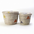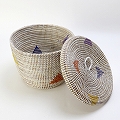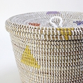 セネガル蓋付き筒カゴ 大 白 三角マルチ