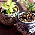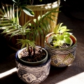 サフィ陶製植木鉢 ぷっくり H15 W15 緑xマルチ