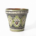 モロッコ陶製植木鉢 伝統柄 中 緑マルチ