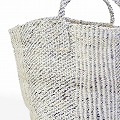 プラアクリルサイザルバッグ12インチ ハンドル短 パートストライプ シルバーx白