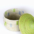 セネガル 蓋付きカゴ 蓋単色 窓柄 黄緑