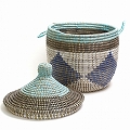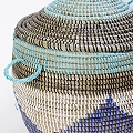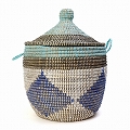 セネガル ぷっくりカゴ ストライプダイヤ柄 紺黒ターコ白