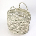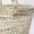 サイザルバッグ12インチ ハンドル短 タイダイ透かし編み 生成xグリーン