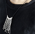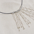 メタルビーズ革紐ネックレス スティック シルバーカラー