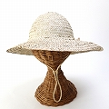 アガデス編み帽子 ひも付き ナチュラルx生成革