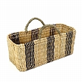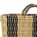 ストロー横長カゴ L ドームハンドル 柄2 黒