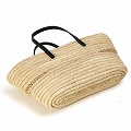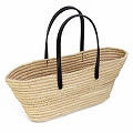 ラフィア楕円底透かしミニカゴ 平細革ハンドル 黒