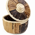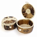 ラフィアバナナかご5x3 蓋付き 市松模様