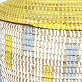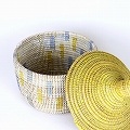 セネガル 蓋付きカゴ 蓋単色 窓柄 黄緑