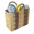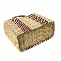 ストロー四角かご ドームハンドル S 柄2 フシア
